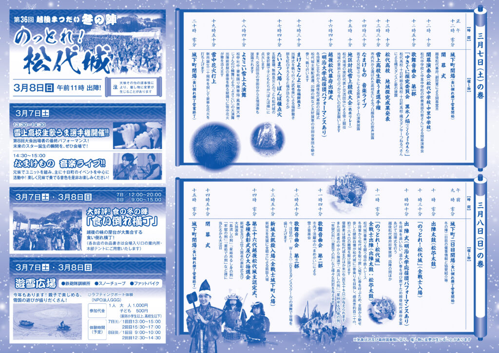 新市誕生20周年記念 第36回『越後まつだい冬の陣』のっとれ!松代城の申し込みを2月15日に締切ました。